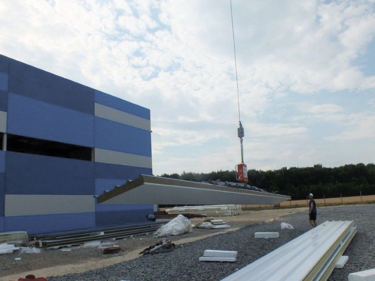 В рамках строительства Завода, расположенном на площади 14500 квадратных метров вакуумные захваты АРЛИФТ выполнили монтаж кровельных панелей для линий по производству сэндвич-панелей и металлочерепицы.