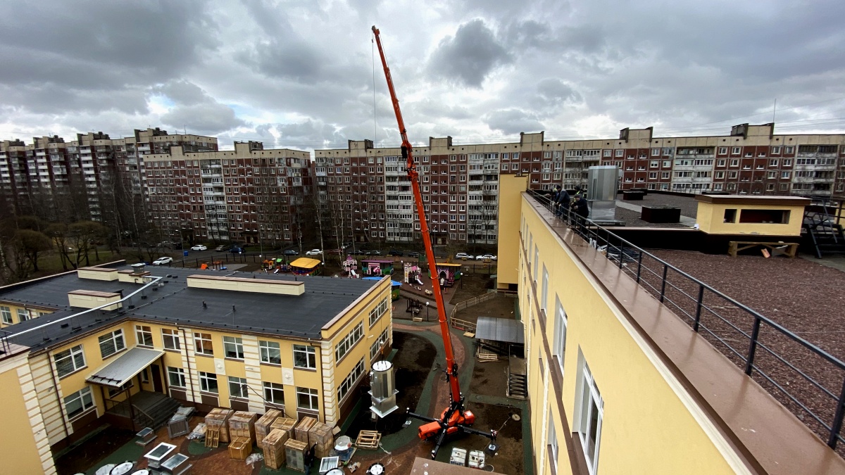 Мини-кран SPX1280 на монтаже вентиляции