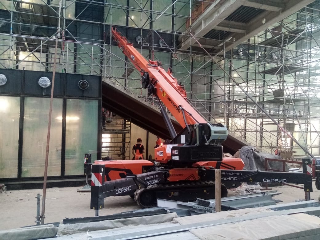 Монтаж металлоконструкций с помощью мини-крана Арлифт