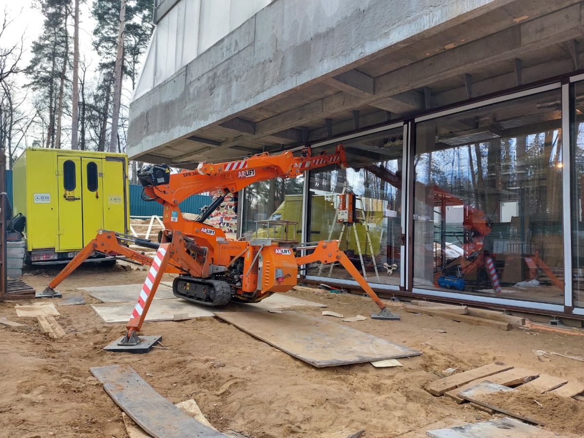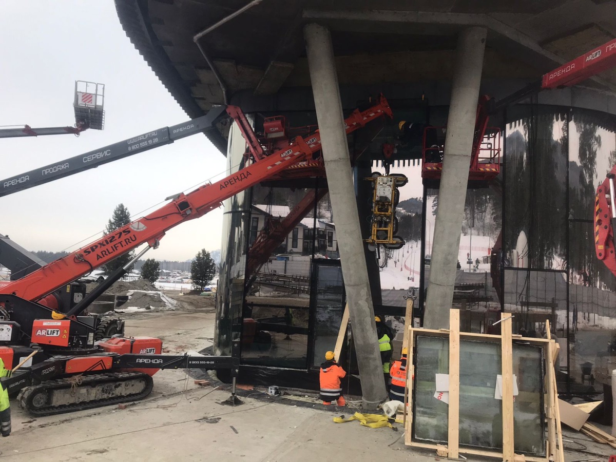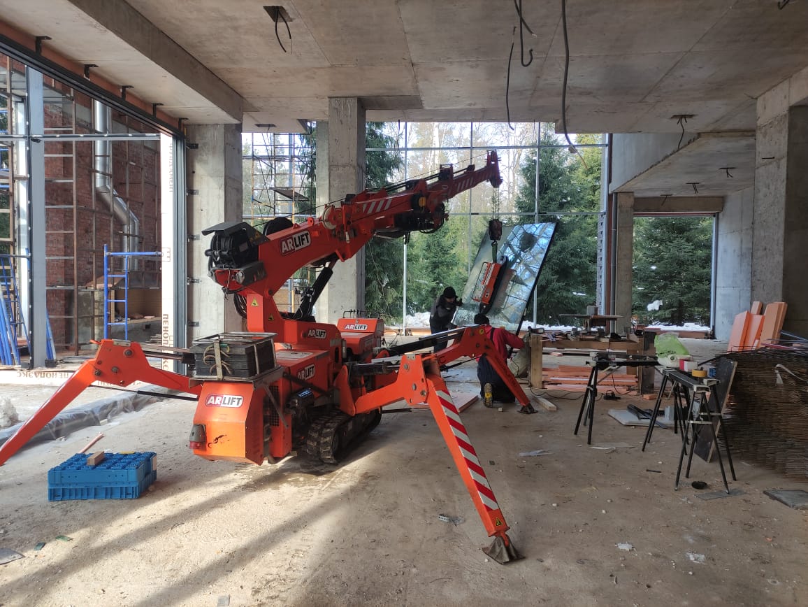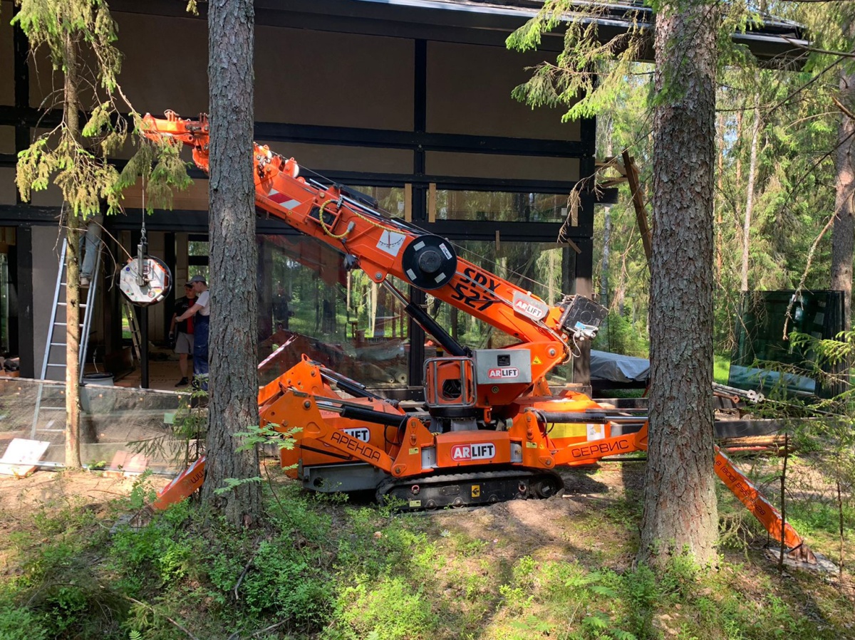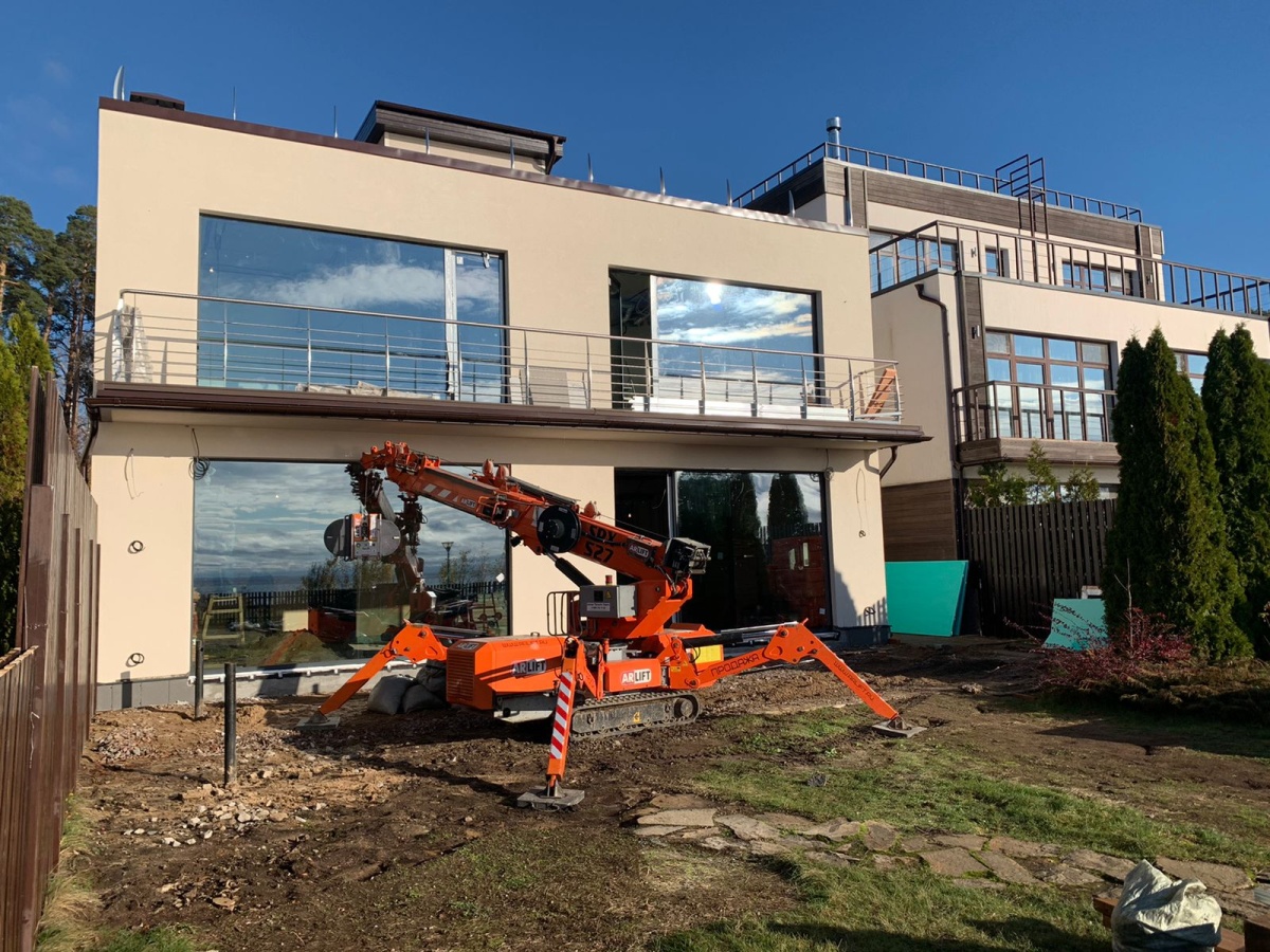 Остекление коттеджа с помощью мни-крана Арлифт