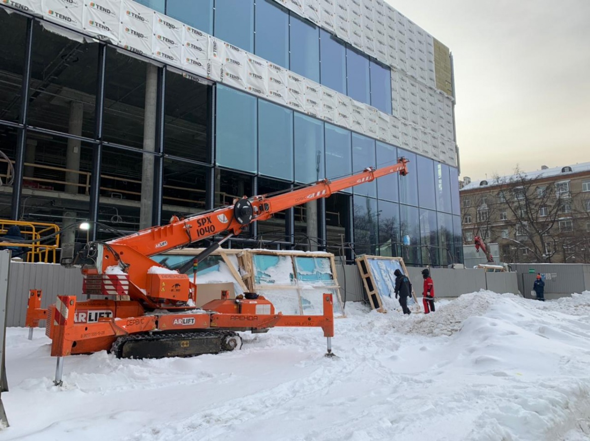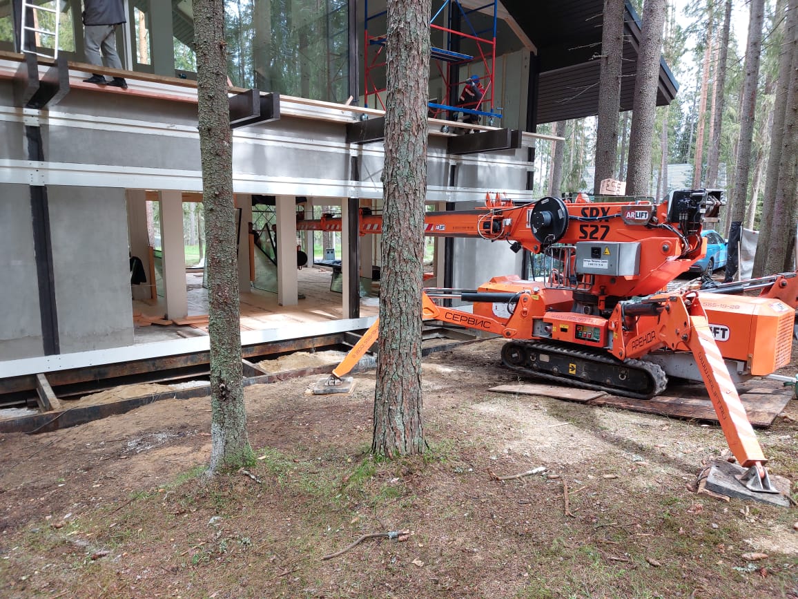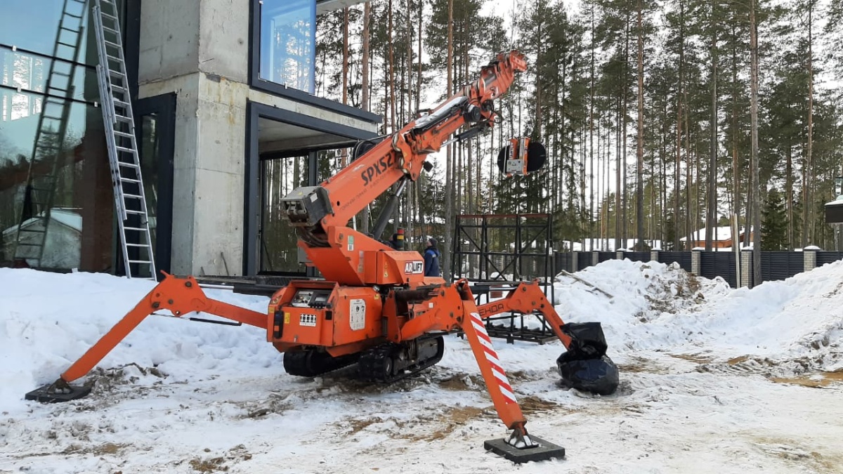 Остекление коттеджа с помощью мини-крана SPX527