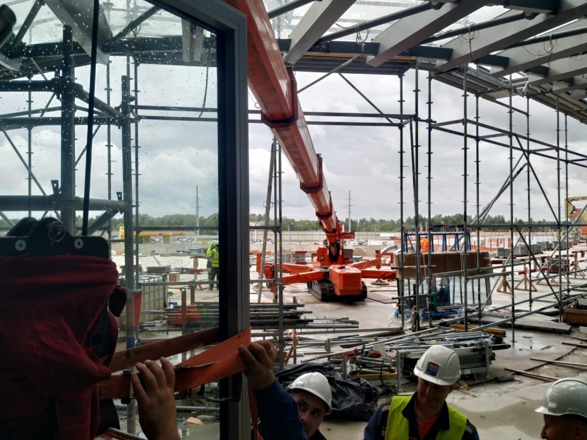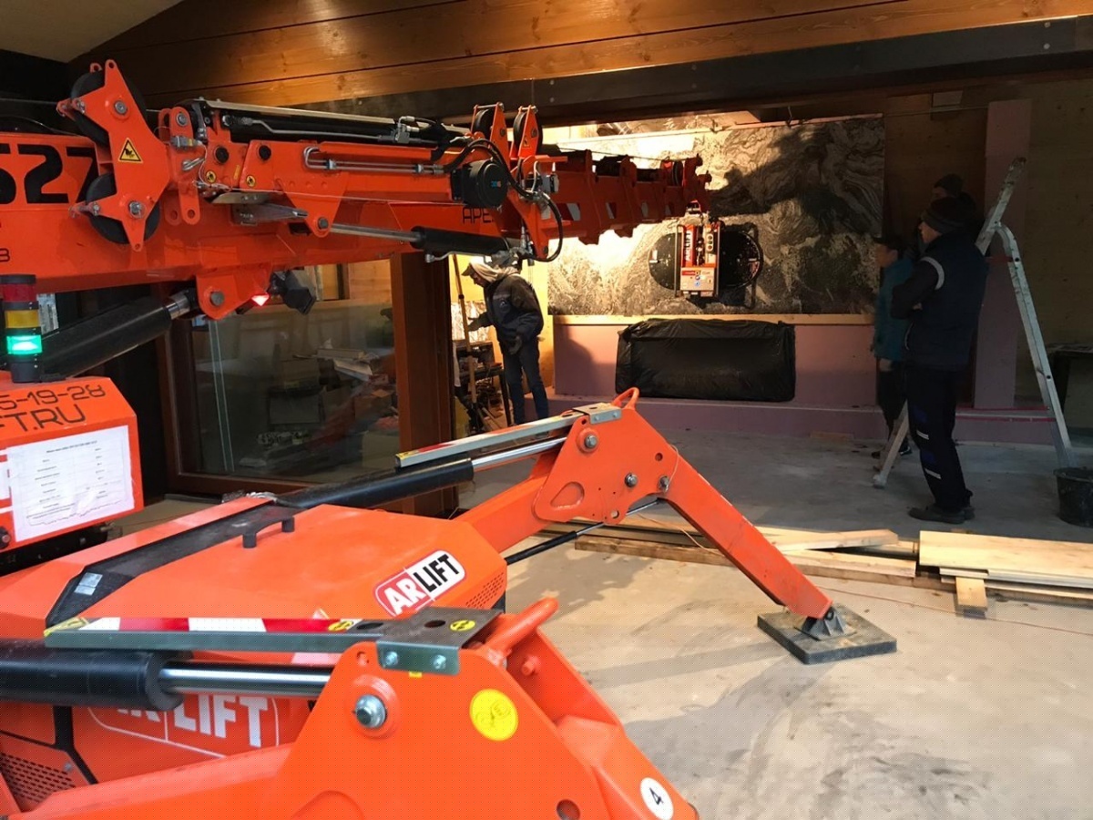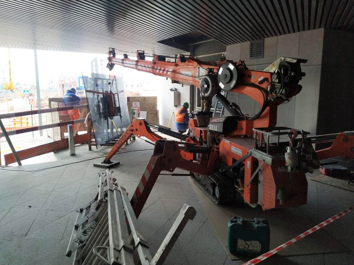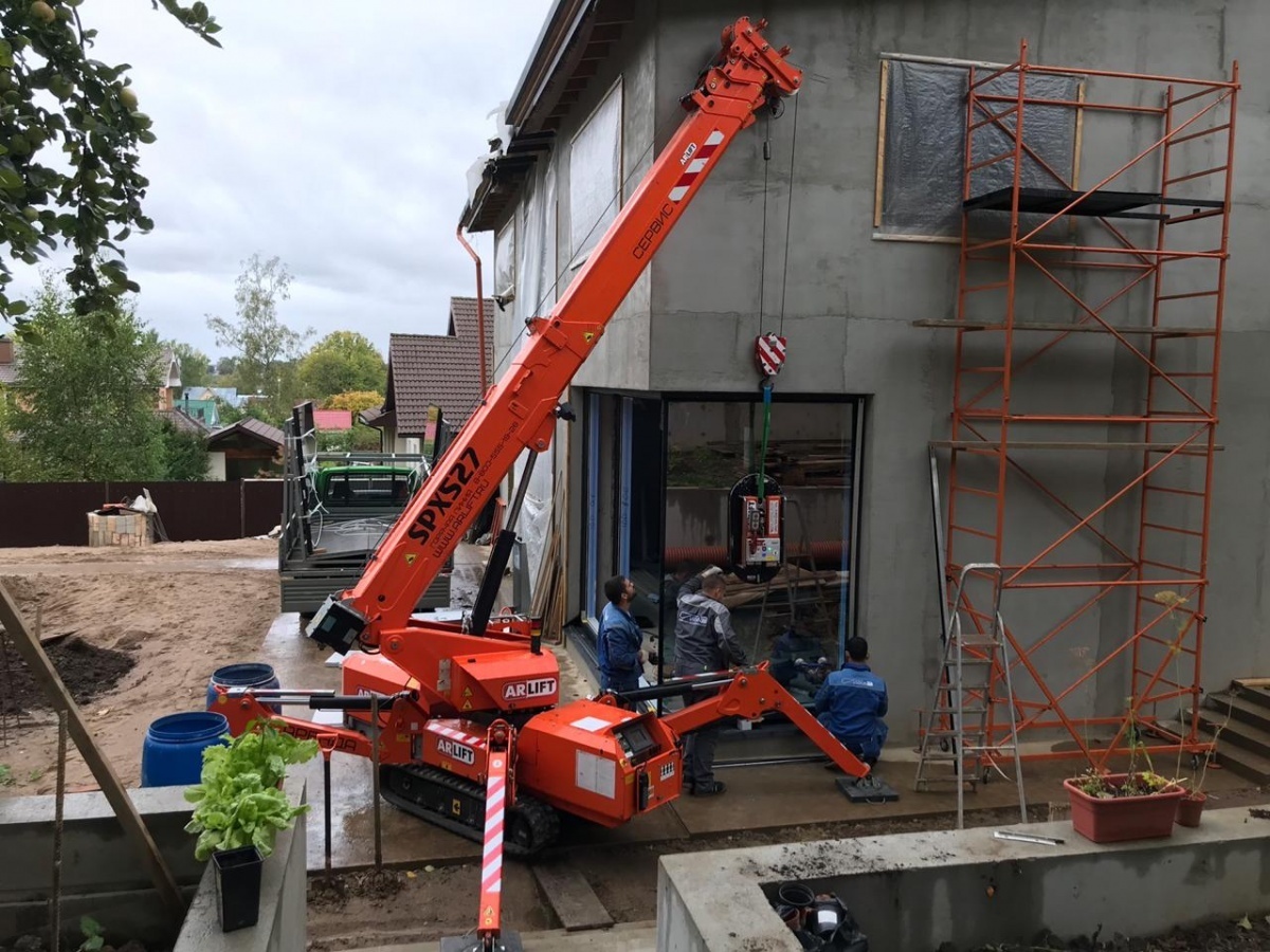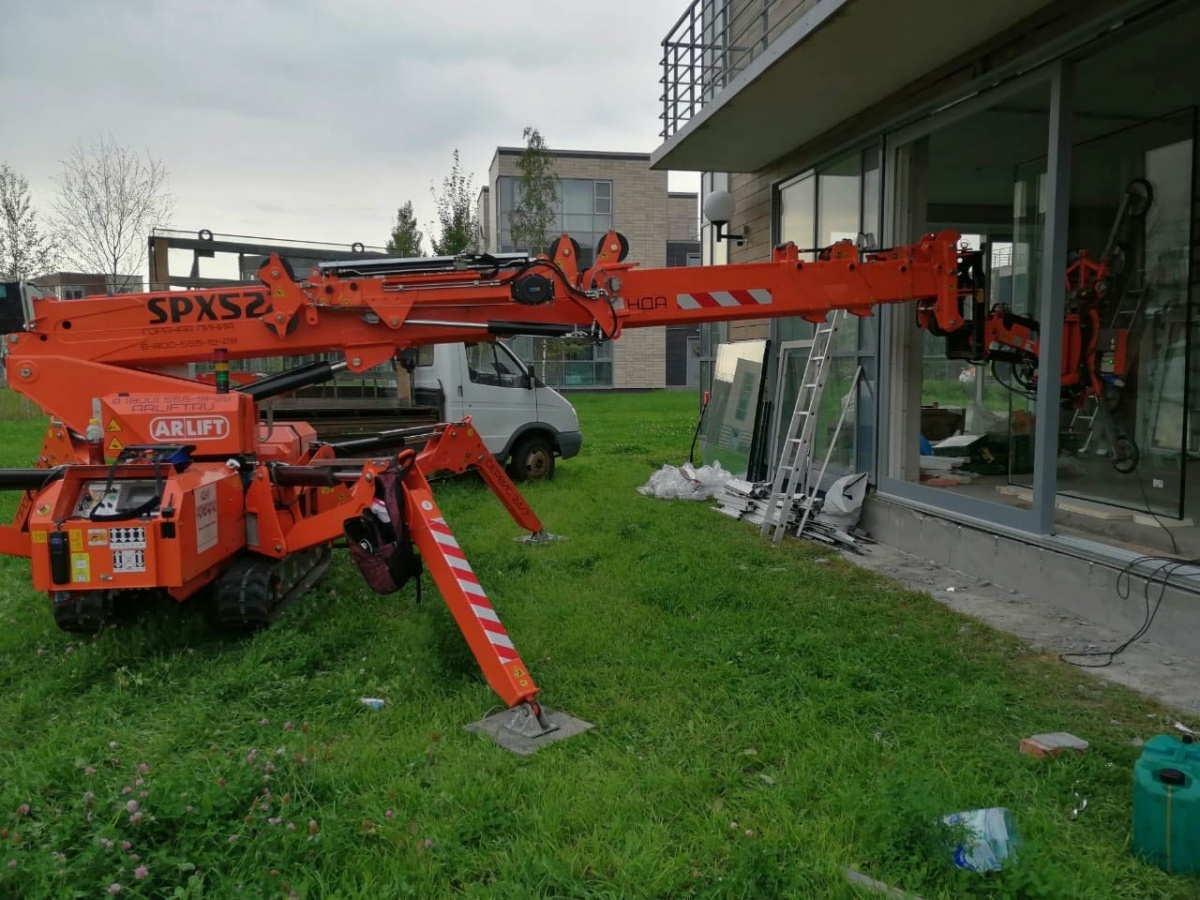 Мини-кран SPD360 и вакуумный захват Arlifter GS на монтаже стеклопакетов