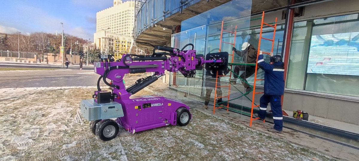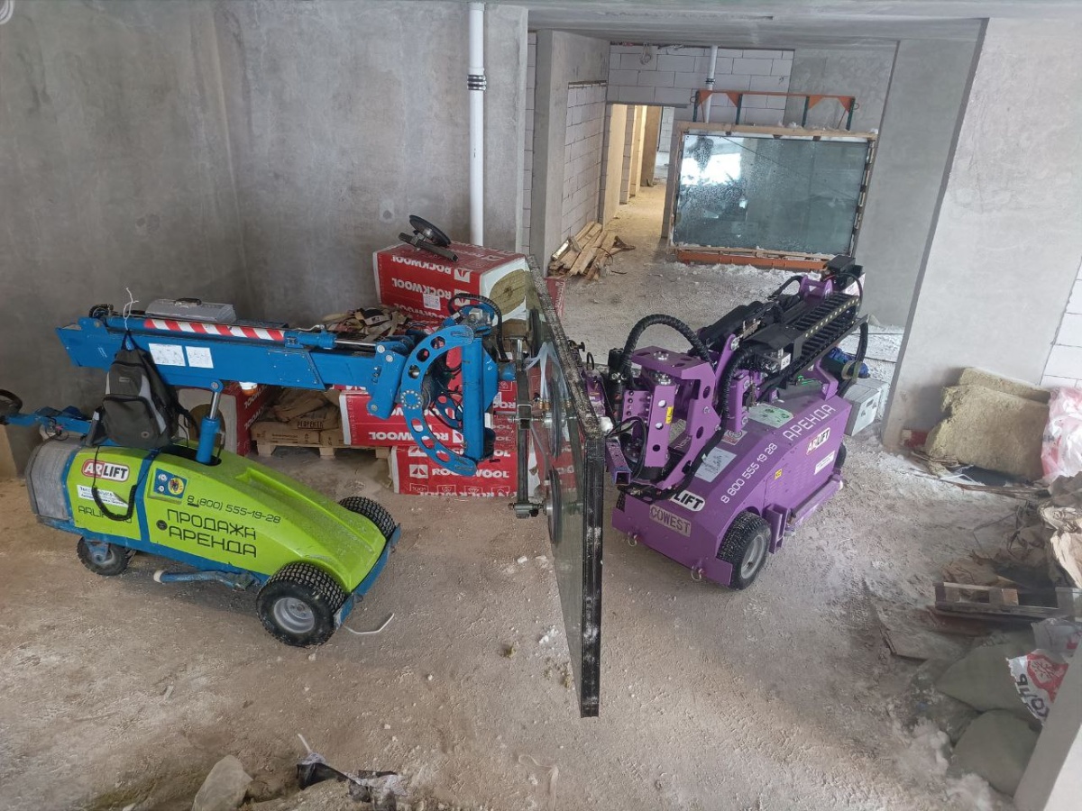 Остекление с помощью вакуумного захвата и стеклоробота Арлифт