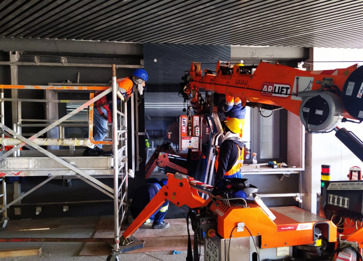 Монтаж крупногабаритных стекол