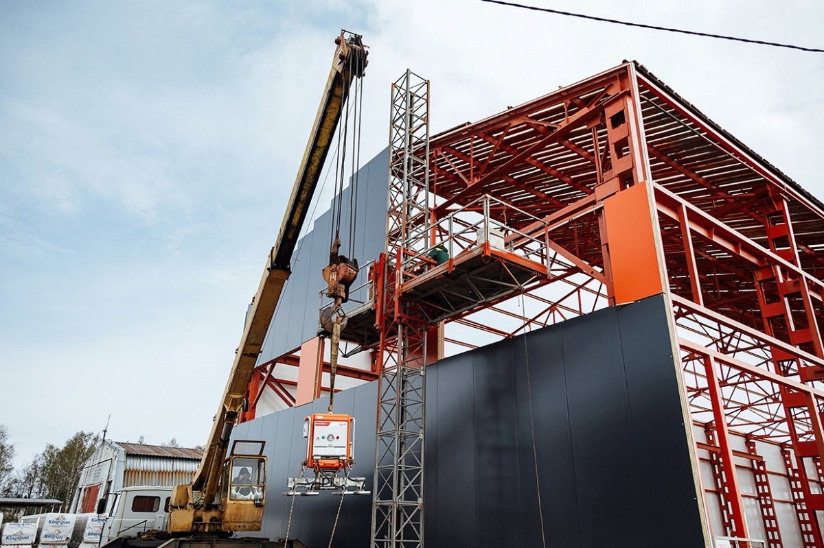 Компания АРЛИФТ. Вертикальный монтаж сэндвич-панелей