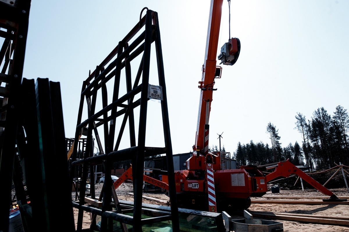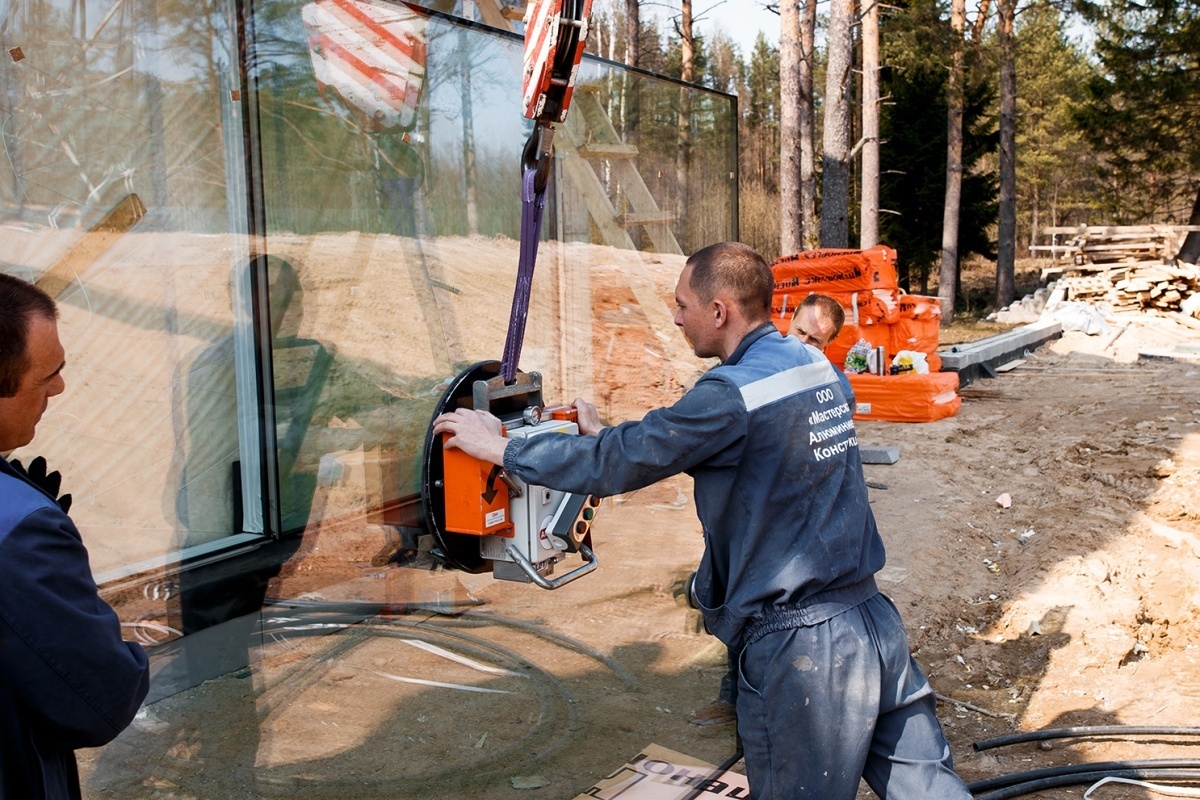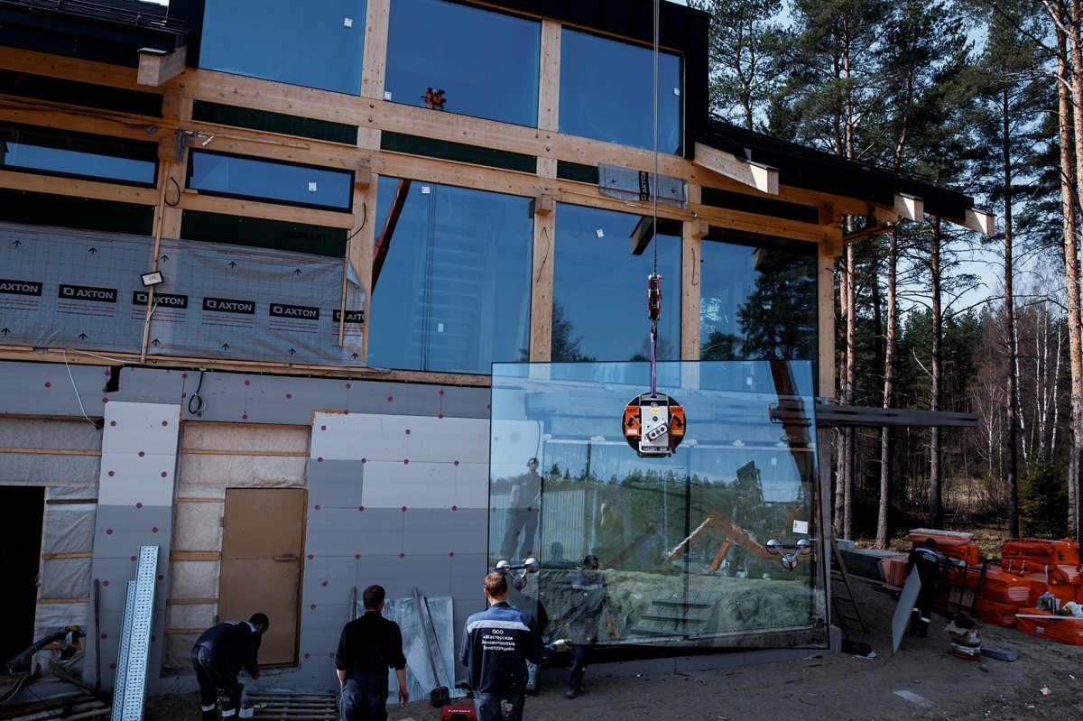 Панорамное остекление коттеджа вакуумных захватом АРЛИФТ
