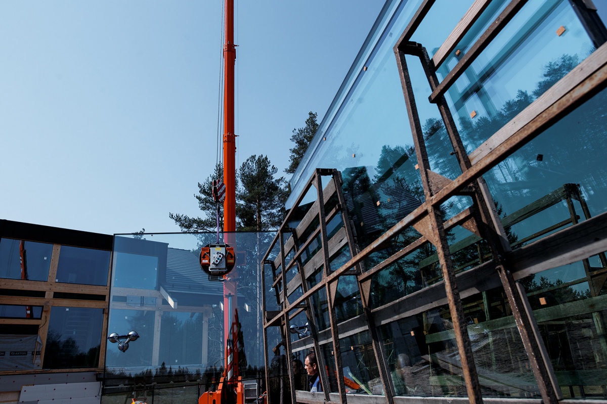 Монтаж стекла вакуумным захватом