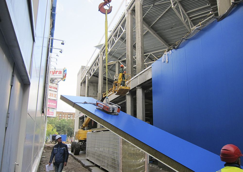 Монтаж сэндвич-панелей с помощью вакуумного захвата Arlifter SP4