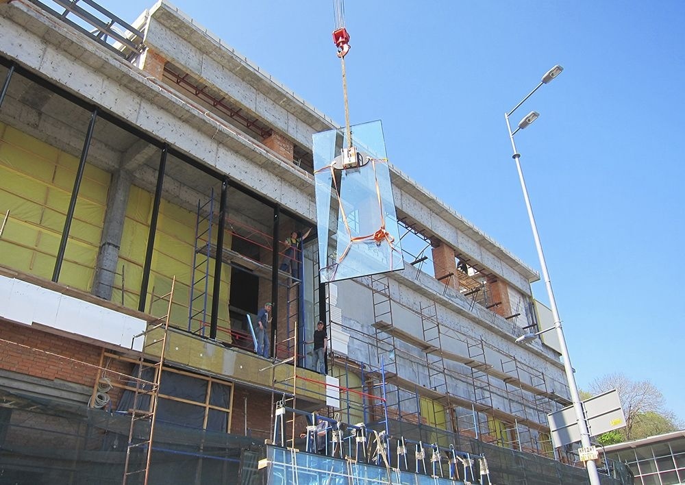 Монтаж стекла вакуумным захватом