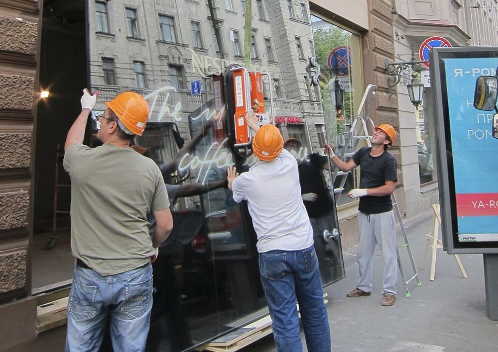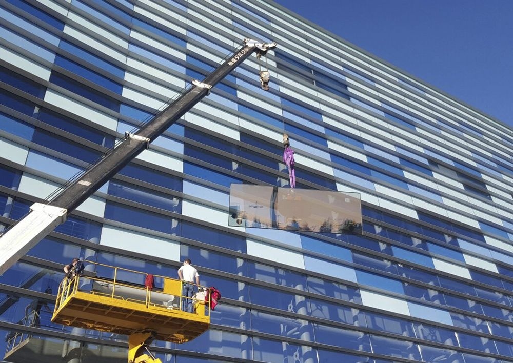 Монтаж стекла на здание