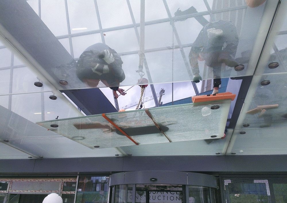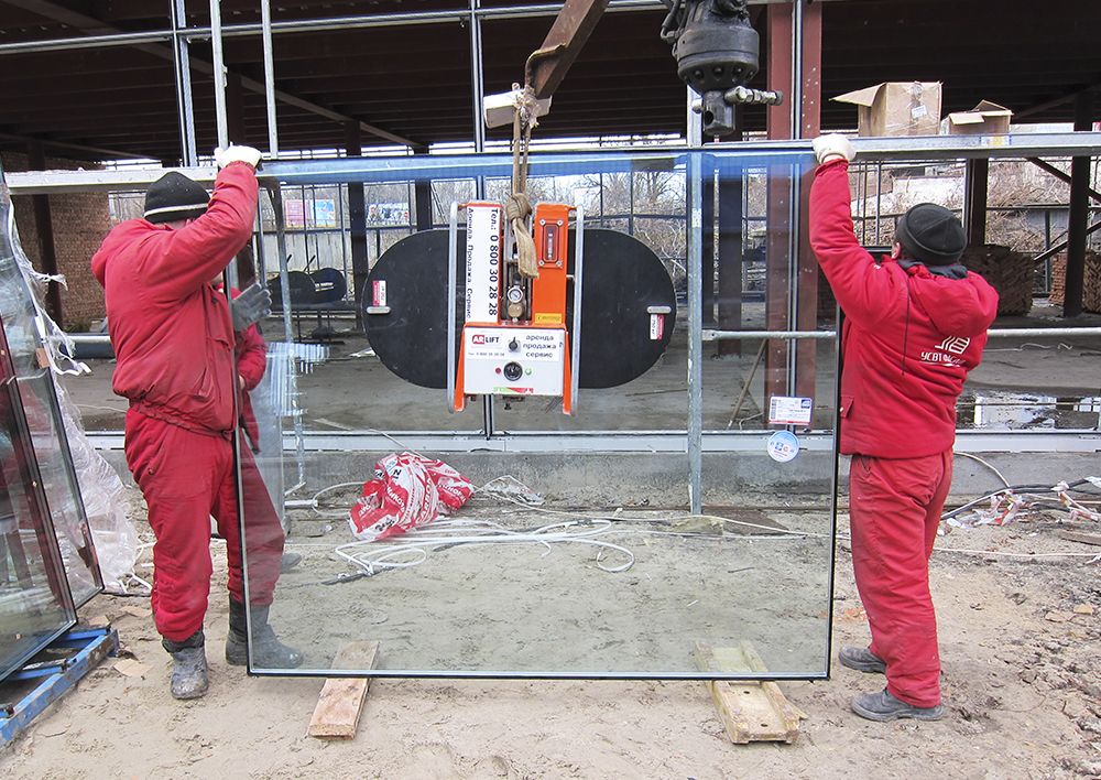 Монтаж крупногабаритных стекол