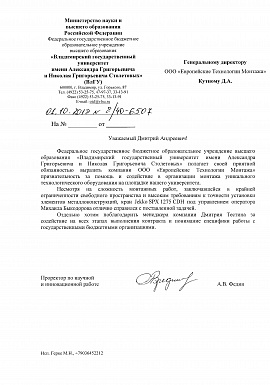 Благодарственное письмо от ООО "Еврогруп"